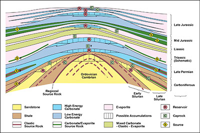 • Structural elements, basin evolution, significance of different unconformities and burial history.